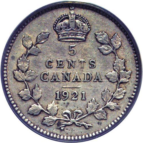 George V 5 Cents 1921, KM22a, VF30 PCGS. A nice circula
