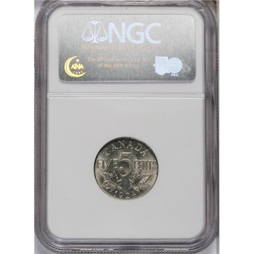 <B>George V 5 Cents 1924,</B></I> KM29, MS63 NGC. An average strike with light abrasions.