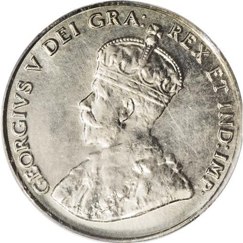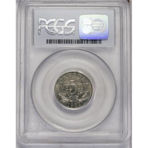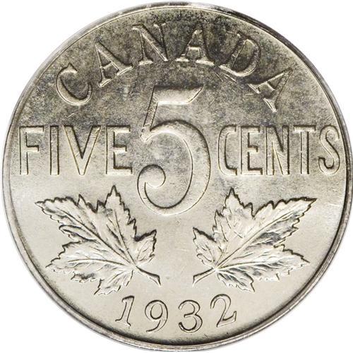 <B>George V 5 Cents 1932,</B></I> KM29, MS64 PCGS. The strike is adequate with nice luster and slightly grainy fields. Only one piece has been certified finer by PCGS.<BR><I>From the Dominion Collection.</B></I>