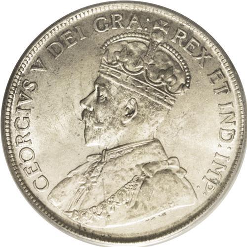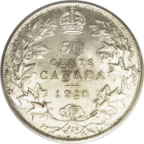 <B>George V 50 Cents 1920 Narrow 0,</B></I> KM25a, MS64 PCGS. Fully lustrous with an average strike for the issue and a bit of golden toning.<BR><I>From the Dominion Collection.</B></I>