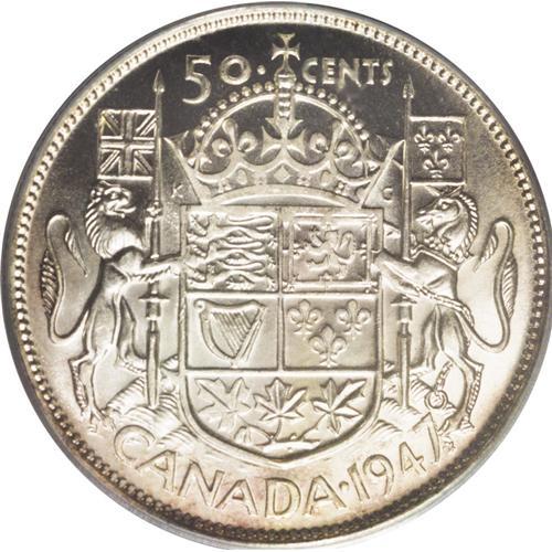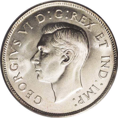 George V 50 Cents 1947 Maple Leaf Straight 7, KM36, MS6