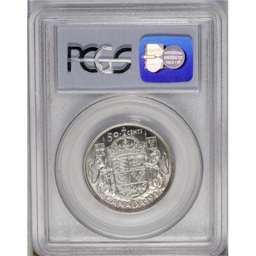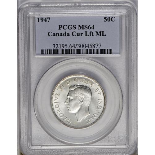 <B>George VI 50 Cents 1947 Maple Leaf Straight 7,</B></I> KM36, MS64 PCGS. Brilliant white and sharply defined with a few minor obverse abrasions. An excellent example of the grade.<BR><I>From the Dominion Collection.</B></I>