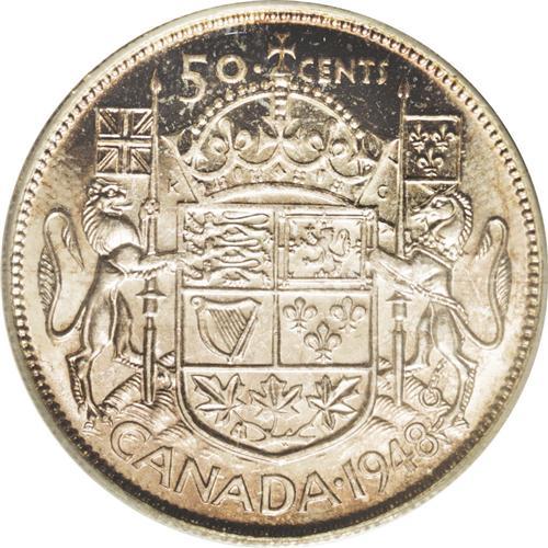 <B>George VI 50 Cents 1948,</B></I> KM45, MS64 PCGS. Well struck with attractive coppery-gold toning and minimally abraded surfaces.