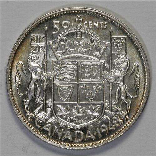 George V 50 Cents 1948, KM45, UNC. Well struck with bri