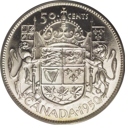 <B>George VI 50 Cents 1950 Design in 0,</B></I> KM45, MS66 PCGS. Sparkling white luster with lightly reflective fields, near-flawless fields. This is the single finest piece certified by PCGS.<BR><I>From the Dominion Collection.</B></I>