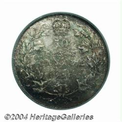George V 50 cent 1936, KM25a, toned MS66 PCGS. Only three pieces have been certified finer by PCGS. Important notice: Heritage usually auctions material at the rate of 200-250 lots per hour. On some occasions eBay Live bid software or the Internet may not be able to keep up with the pace of the auction. We recommend placing a realistic absentee bid now as insurance to avoid disappointment. Occasionally the auctioneer may eliminate or reject an eBay Live bid, and the auctioneer may also reopen a lot after the close of the eBay live bidding (usually because we missed an audience bid), and may reject your bid even if it shows you as the winning bidder. By bidding via eBay Live, you agree that Heritage may award the lot to another bidder at its sole discretion under the circumstances described above or any other reasonable circumstances. Also please note that all Heritage lots purchased through eBay Live carry a 20% Buyer's Premium. Please make sure you read the Terms and Conditions before you bid.