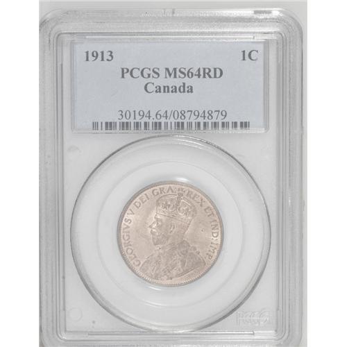 <B>George V Cent 1913,</B></I> KM21, MS64 Red PCGS. Fully brilliant and well struck.