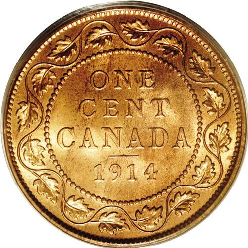 <B>George V Cent 1914,</B></I> KM21, MS65 PCGS, Great coin with full red color.