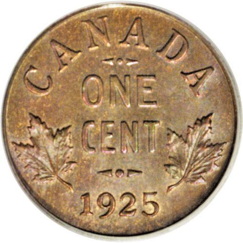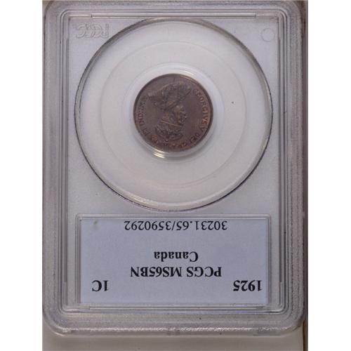 <B>George V Cent 1925, </B></I>KM28, MS65 BN PCGS, a choice example of this scarce date with glossy brown surfaces and just a trace of original luster in the legends.<BR><I>From the Dominion Collection.</B></I>