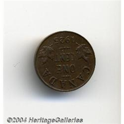 <B>George V Cent 1925, </B></I>KM28, glossy brown AU, key date. <BR><BR><B>Important notice:</B> Heritage usually auctions material at the rate of 200-250 lots per hour. On some occasions eBay Live bid software or the Internet may not be able to keep up with the pace of the auction. We recommend placing a realistic absentee bid now as insurance to avoid disappointment. Occasionally the auctioneer may eliminate or reject an eBay Live bid, and the auctioneer may also reopen a lot after the close of the eBay live bidding (usually because we missed an audience bid), and may reject your bid even if it shows you as the winning bidder. By bidding via eBay Live, you agree that Heritage may award the lot to another bidder at its sole discretion under the circumstances described above or any other reasonable circumstances. Since eBay bids are not shown to us until we open the lot on the floor, we treat those bids just like floor bids. In most cases the floor responds before the eBay bid is presented to us, due to Internet lag time, so for consistency we have made it a policy that floor bids are always considered first over tie eBay live bids. Also please note that all Heritage lots purchased through eBay Live carry a 20% Buyer's Premium. Please make sure you read the Terms and Conditions before you bid.