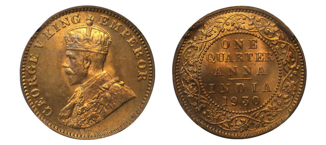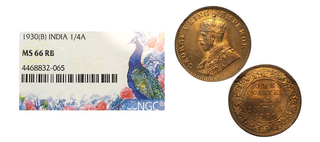 George V, Copper ¼ Anna, 1930, Bombay Mint (Prid 682). Graded by NGC MS66RB.