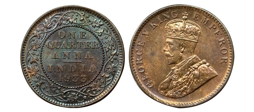 George V, Copper ¼ Anna, 1933, Calcutta Mint, (Prid 673).