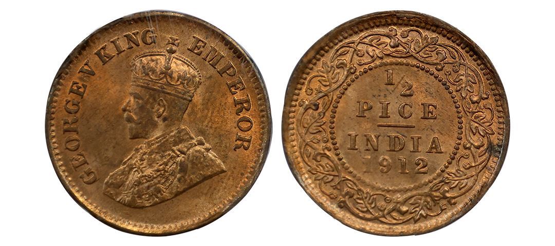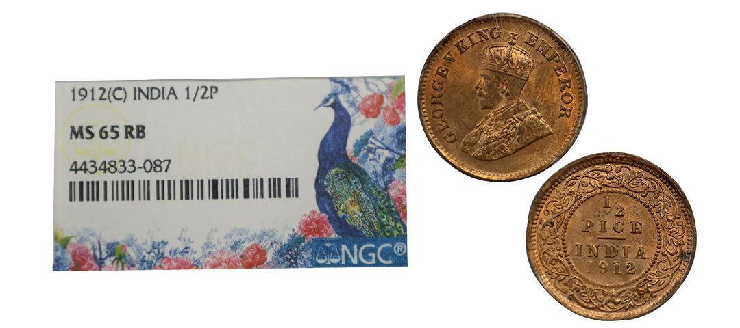 George V, Copper ½ Pice, 1919, Calcutta Mint (Prid 752). Graded by NGC MS65RB.