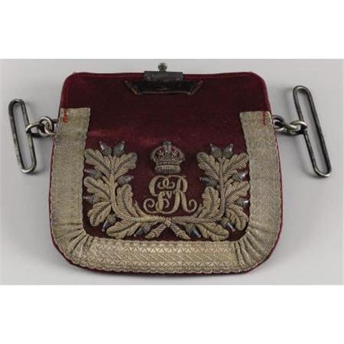 <B>George V Document Pouch </B></I><BR><I>Circa 1915</B></I><BR><BR>Applied with the conjoined letters <I>GR</B></I> for <I>George, Rex</B></I>, King of Great Britain (r. 1910-1936) below the Royal crown and further decorated with a band of oak leaves, the leather and felt case with two compartments-5 ½ in. wide<BR><BR>Provenance:<BR>Purchased from Camden Passage, London<BR><BR><b>Shipping:</b> Requires 3rd Party Shipping (<a target="_blank" href="http://www.heritageauctions.com/common/shipping.php">view shipping information</a>)