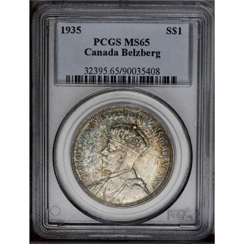 <B>George V Dollar 1935, </B></I>Ex: Belzberg Collection, KM30, MS65 PCGS, nicely toned with russet and gold highlights.<BR><I>From the Wellington Collection..</B></I>