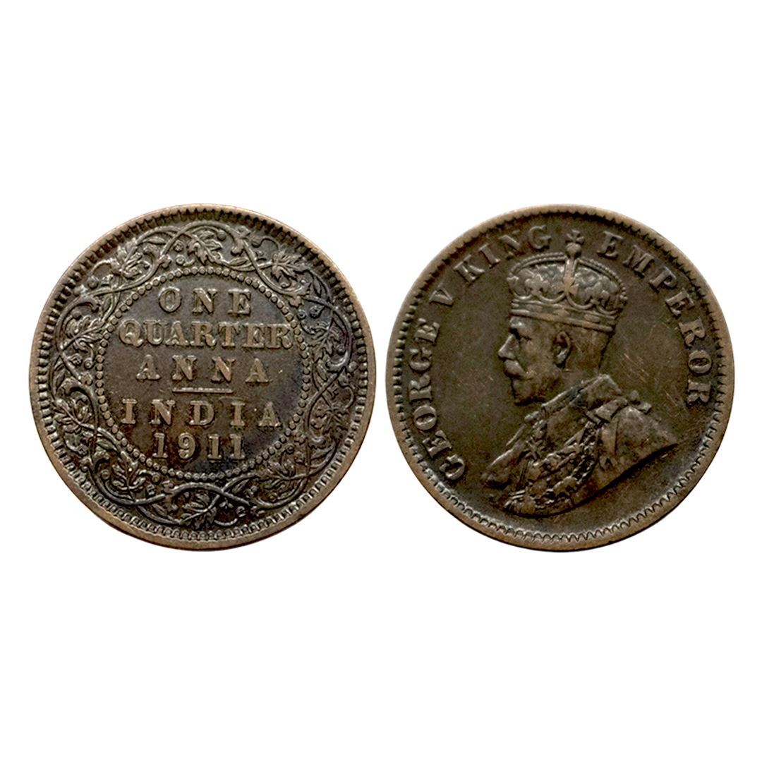 George V, One Quarter Anna, 1911, Calcutta Mint, Extremely Fine, Rare.