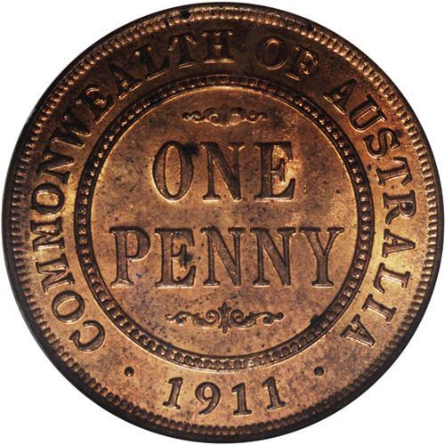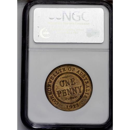 George V Penny 1911, KM23, MS64 Red & Brown NGC, a choi