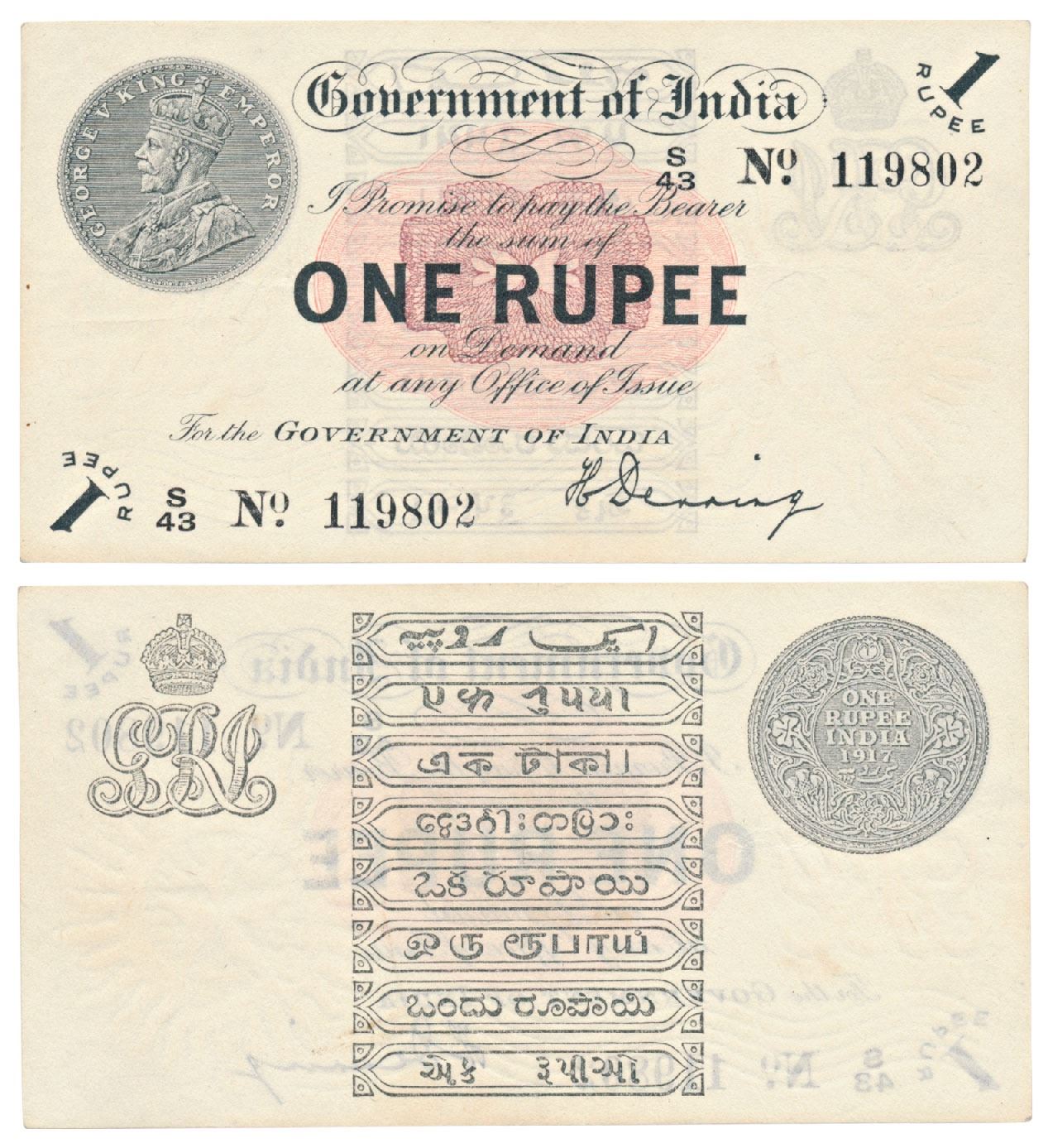 George V, Rupee 1, 1st issue, 1917, signed H. Denning, rayed star watermark, (J&R 3.1.3). Uncirculated, Very Rare.