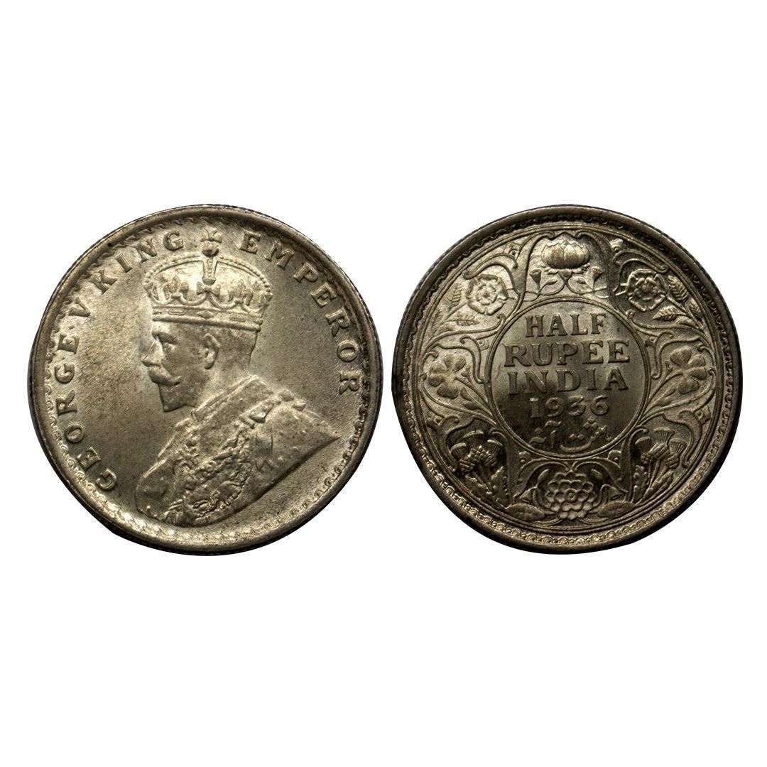 George V, ½ Rupee, 5.76 gms, 1936, Bombay Mint.