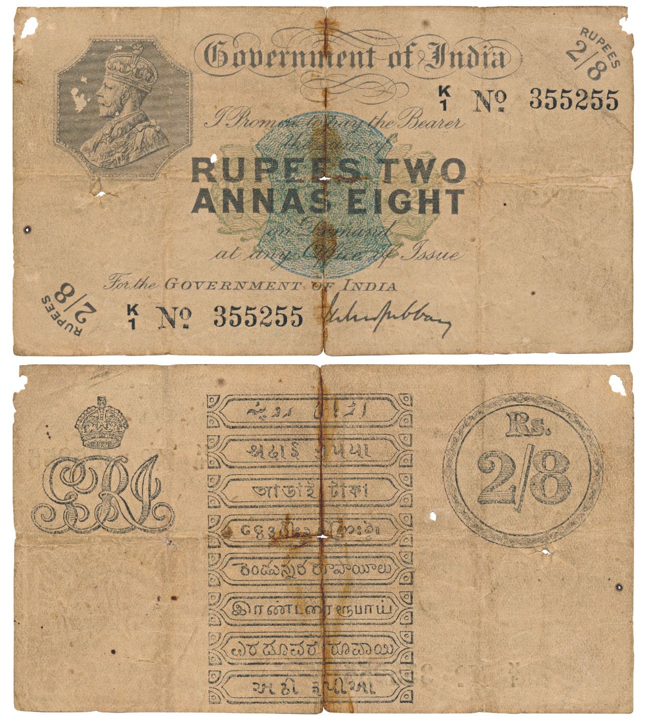 George V, Rupees 2 Annas 8 (2 & ½ Rupees), 1918, signed M. M. S. Gubbay, Prefix K for Karachi, (J&R 3.3.1D). Fine+, Extremely Rare.