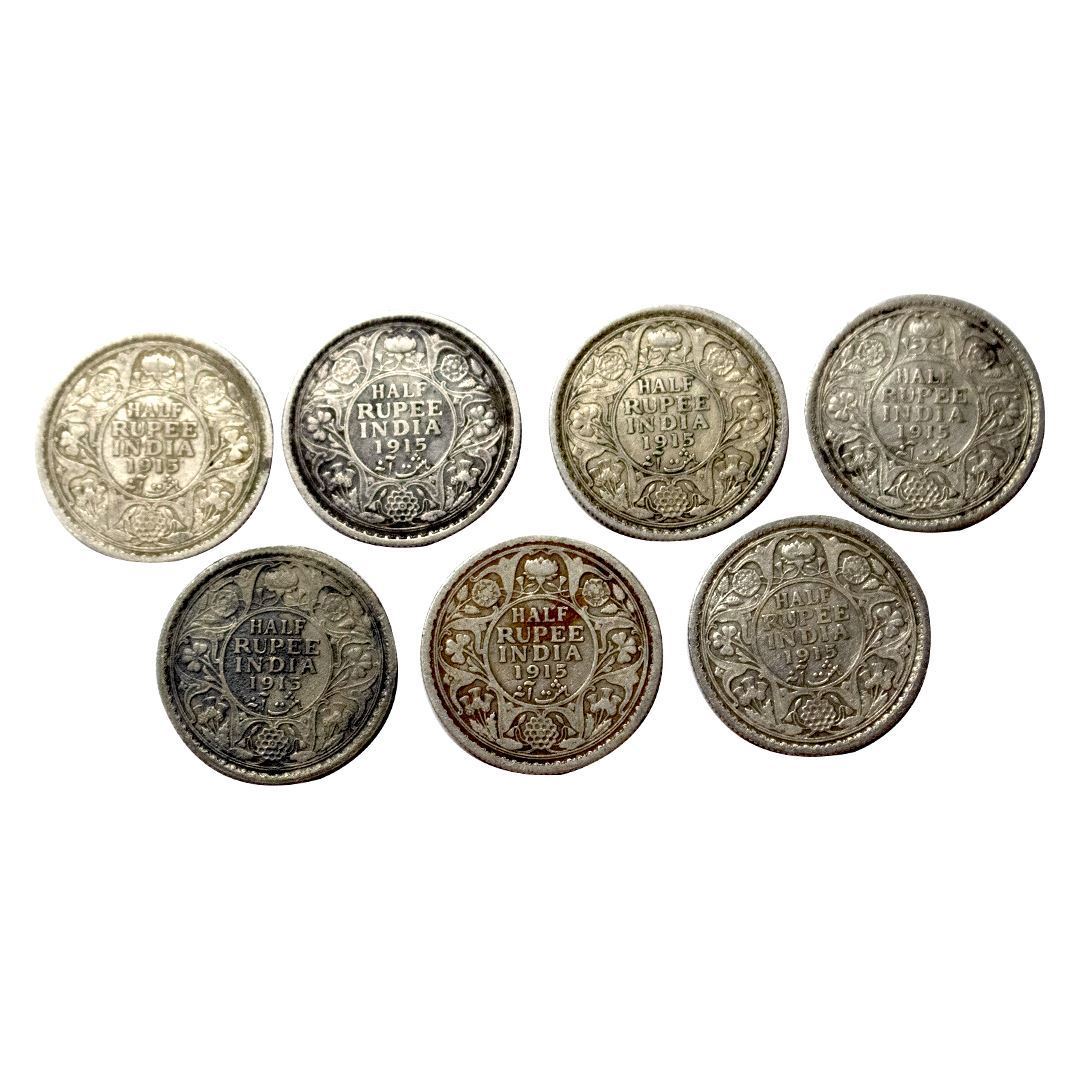George V, Silver 1/2 Rupee, 1915, Set of 7 Coins, Calcutta Mint, Very Fine, Very Scarce.