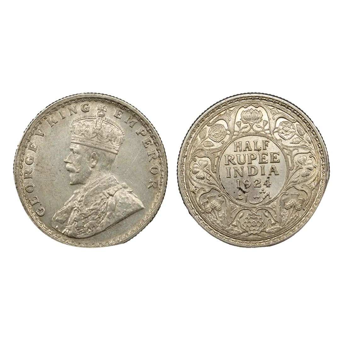George V, Silver 1/2 Rupee, 1924, Calcutta Mint.