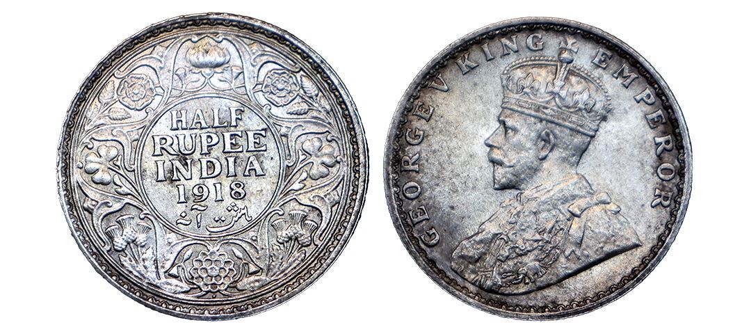 George V, Silver ½ Rupee, 1918, Calcutta Mint