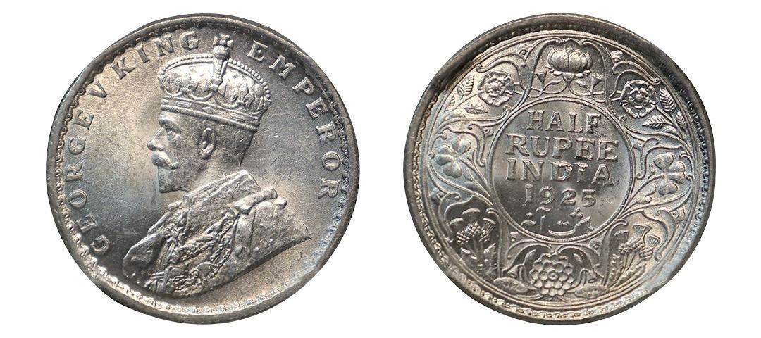 George V, Silver ½ Rupee, 1925, Bombay Mint (Prid 347). Graded by NGC MS64.
