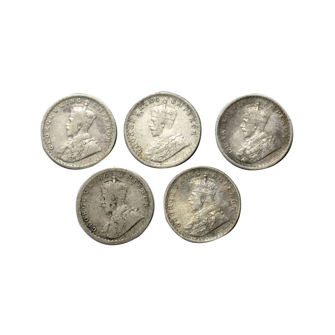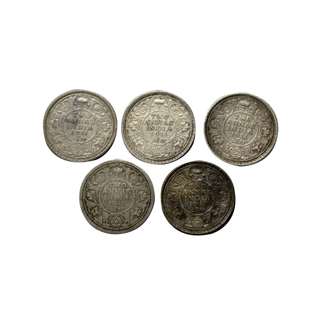 George V, Silver Two Annas, 1911, Set of 5 coins, Very Fine to Extremely Fine, Rare.