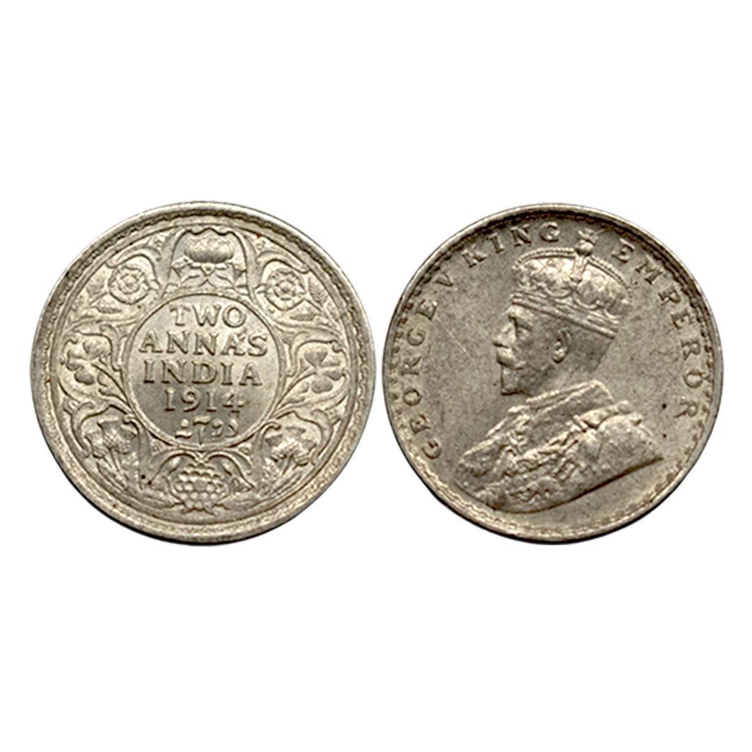 George V, Silver Two Annas, 1914, Calcutta Mint, Extremely Fine, Scarce.