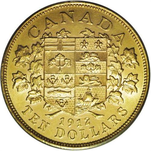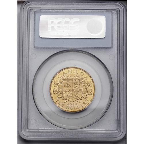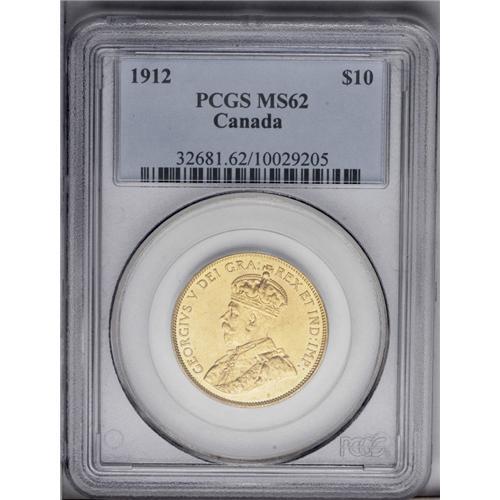 <B>George V gold Ten Dollars 1912,</B></I> KM27, MS62 PCGS, a nice and attractive piece without the typical contact marks.