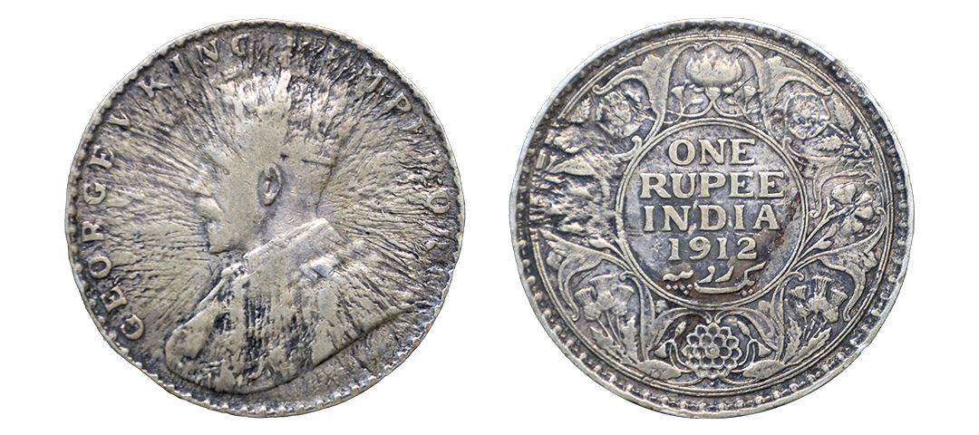 George V, error, silver rupee, 1912, Bombay mint, sunburst error on obverse, Good very fine, Rare.
