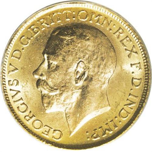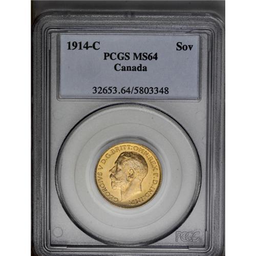 <B>George V gold Sovereign 1914C, </B></I>KM20, MS64 PCGS, a lovely example of this scarce date with full mint luster and unusually clean surfaces.<BR><I>From the Dominion Collection.</B></I>