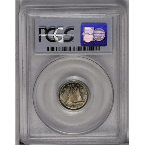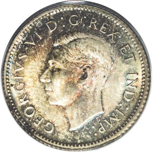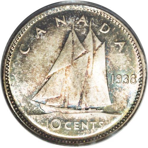 <B>George VI 10 Cents 1938, </B></I>KM34, MS67 PCGS, Ex: Pittman Collection, a remarkable example with splendid multicolored toning and full underlying luster. Extremely rare date in this quality, only one coin has been graded higher than MS65 by PCGS, this specimen!<BR><I>From the Dominion Collection.</B></I>