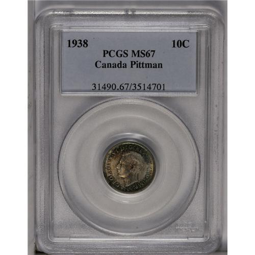 George VI 10 Cents 1938, KM34, MS67 PCGS Pittman Collec