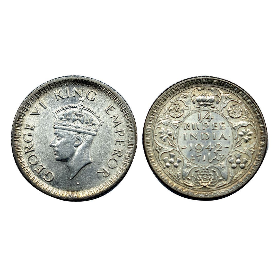 George VI, 1942, Silver ¼ Rupee, Calcutta Mint.
