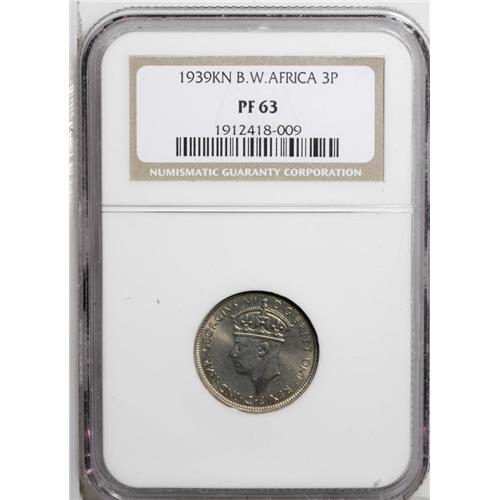 <B>George VI 3 Pence 1939KN, </B></I>KM21, Proof 63 NGC.<BR><BR><b>Shipping:</b> Coin/Currency (<a target="_blank" href="http://www.heritageauctions.com/common/shipping.php">view shipping information</a>)