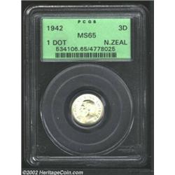 George VI 3 Pence 1942 1 Dot, KM7, MS65 PCGS, hints of speckled brown toning on the reverse. An elus