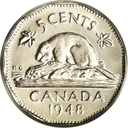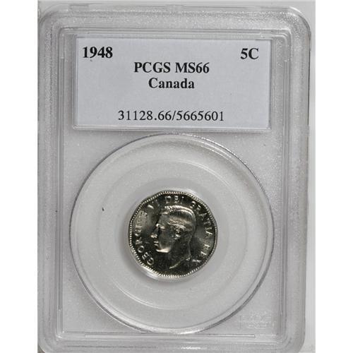 <B>George VI 5 Cents 1948,</B></I> KM42, MS66 PCGS. Well struck and brilliant. None have been certified finer by PCGS.<BR><I>From the Wellington Collection..</B></I>