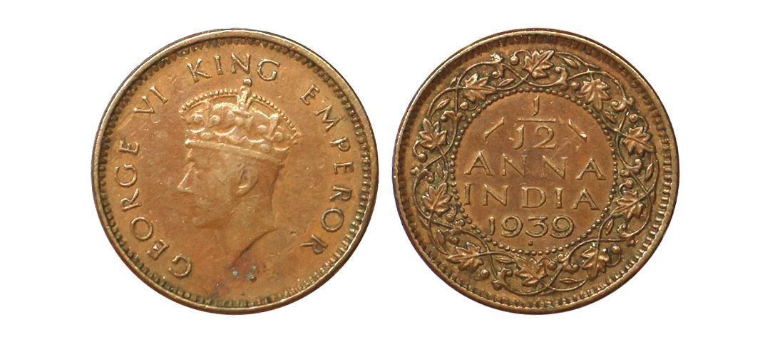 George VI, Bronze 1/12 Anna, 1939, Bombay Mint, Head type I, AUNC.