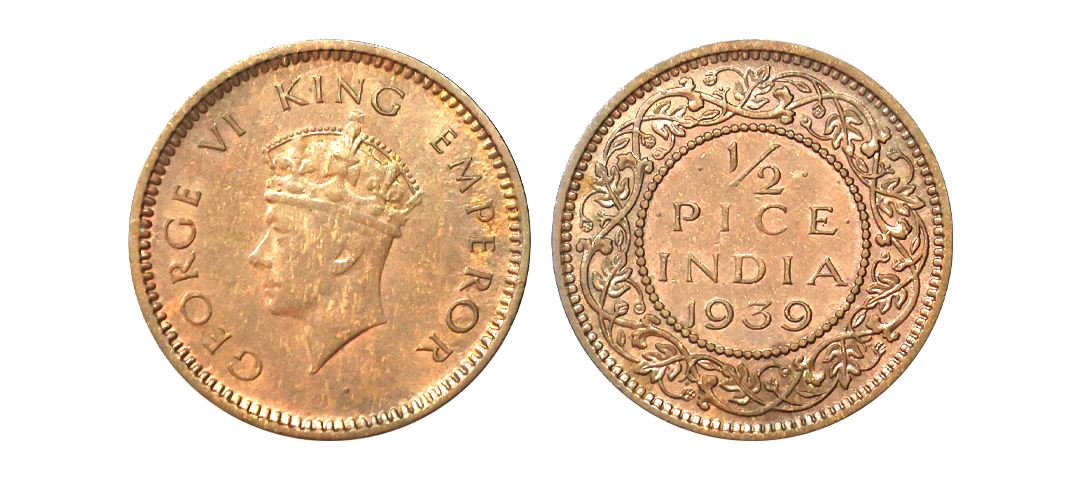 George VI, Bronze 1/2 Pice, 1939, Calcutta Mint, AUNC.