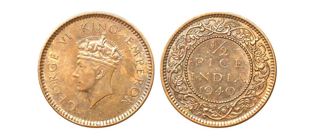 George VI, Bronze 1/2 Pice, 1940, Calcutta Mint, AUNC.