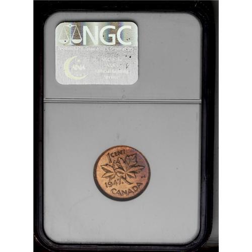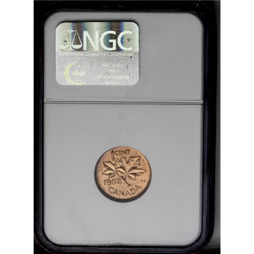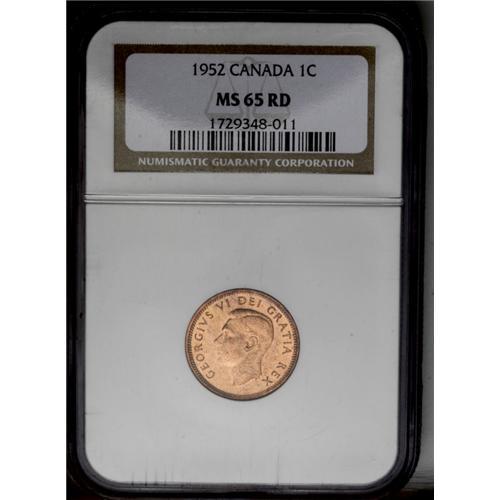 <B>George VI Cents - Certified Date Trio, </B></I>KM32 1943 MS64 RD PCGS and 1947 Maple Leaf MS64 RD NGC, and KM41 1952 MS65 RD NGC.