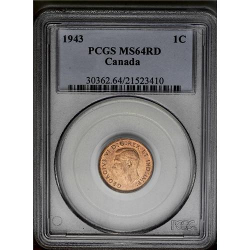 George VI Cent - Certified Date Trio, KM32 1943 MS64 RD