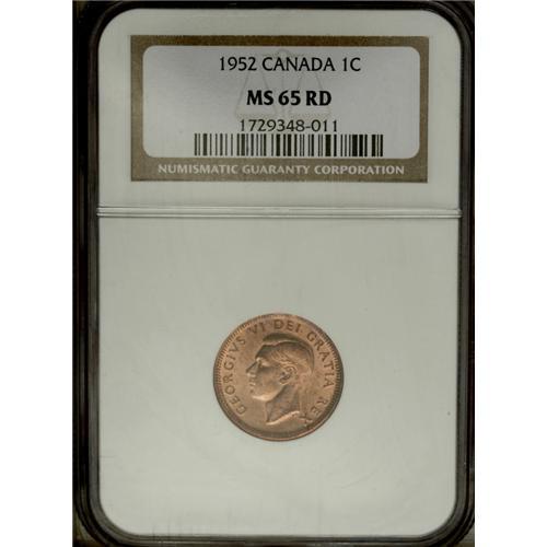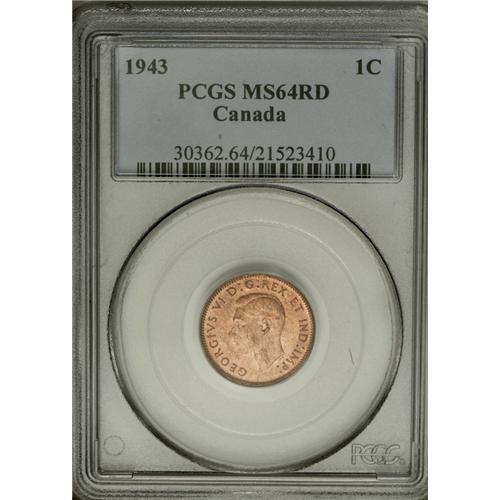 <B>George VI Cents - Certified Date Trio, </B></I>KM32 1943 MS64 RD PCGS and 1947 Maple Leaf MS64 RD NGC, and KM41 1952 MS65 RD NGC.<BR><BR><b>Shipping:</b> Coin/Currency (<a target="_blank" href="http://www.heritageauctions.com/common/shipping.php">view shipping information</a>)