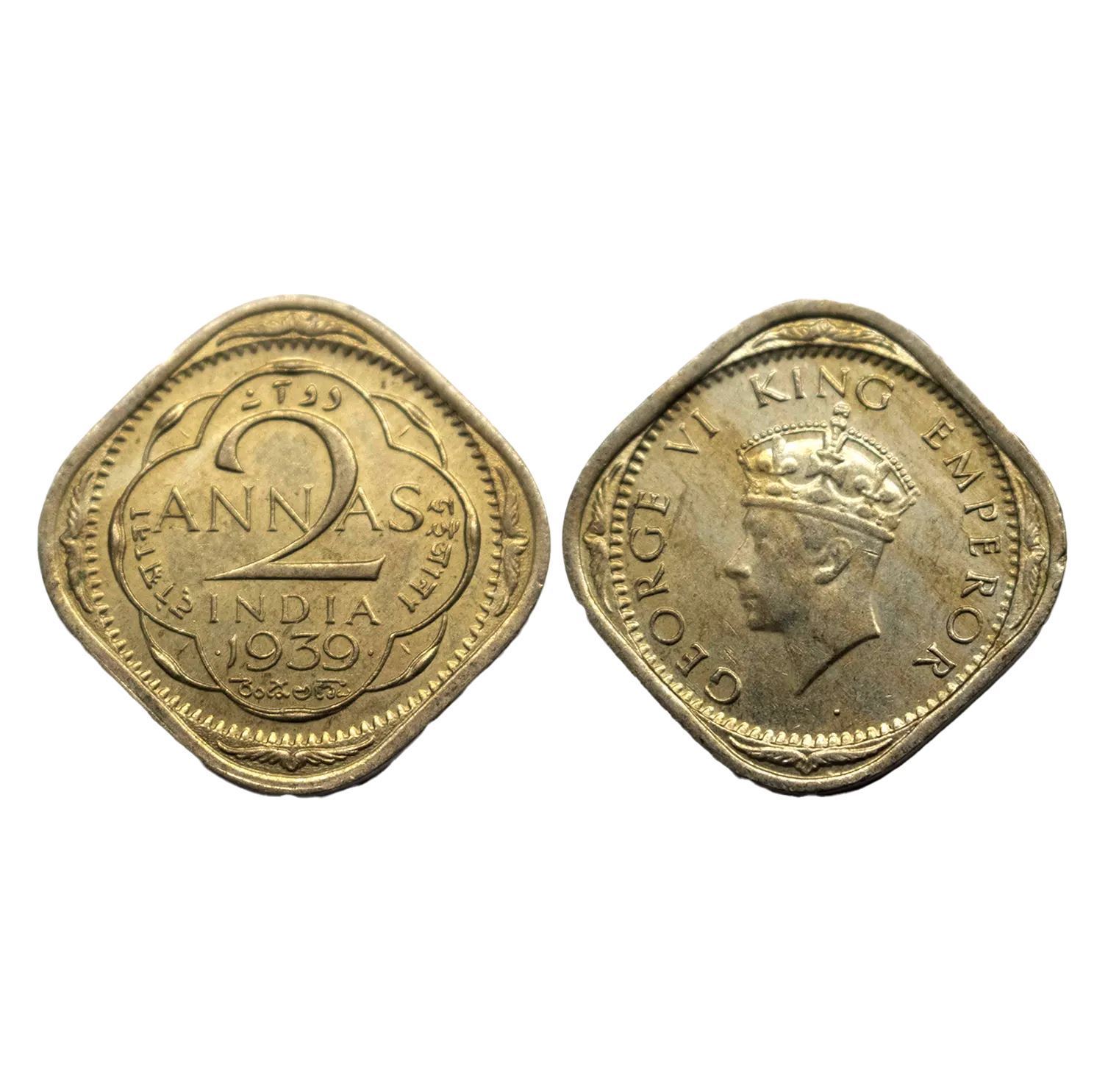 George VI, Copper-Nickel, 2 Annas, 1939, Bombay Mint, Dots by year, Head Type I. obv. desing type I.