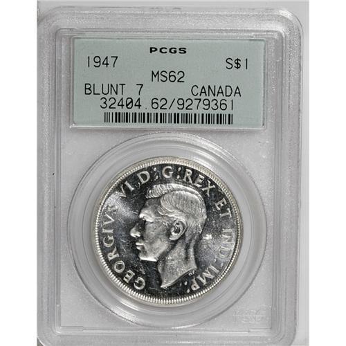George VI Dollar 1947 Blunt 7, KM37, MS62 PCGS, fully l