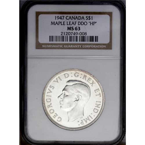 George VI Dollar 1947 ML Double HP, KM37, MS63 NGC, a p George VI Dollar 1947 ML Double HP,