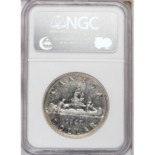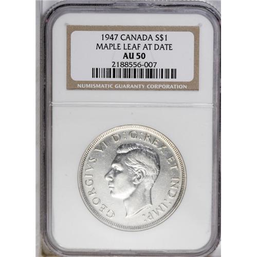 <B>George VI Dollar 1947 Maple Leaf, </B></I>KM37, AU50 NGC.
