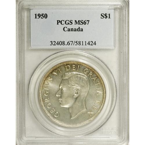George VI Dollar 1950 FWL, KM46, MS67 PCGS, lightly ton